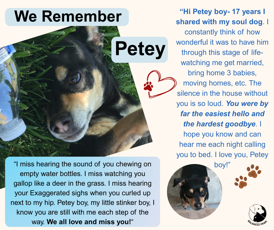 "Today we found ourselves helplessly desperate to give our 10 year old pup an unexpected goodbye. A huge thank you to the team at Balanced Paws for their compassion and ability to schedule us in right away. Dr. Amy Everly embraced our pup as her own and kept us informed of every step being taken. Thank you for helping us give our pup an honorable and painless goodbye. Although we lost our sweet boy, we are forever grateful for your big heart helping us through while ours was breaking."